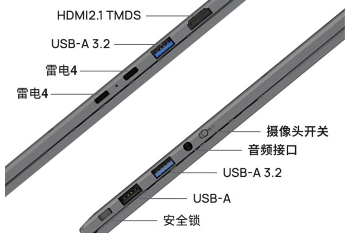 至于说接口彭胀部分,天然是一款价钱不贵的札记本,接口却少许没缩水。它配备了3A2C接口,其中2个USB Type-C齐是雷电4公约,以及1个特意的USB2.0接口用来辘集键鼠等低速建设。另外还有HDMI接口以及录像头的物理开关。