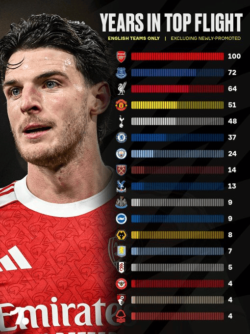 虎扑04月18日讯OneFootbal发布了一张英格兰球队连络建立顶级联赛赛季数的统计图,图中流露,百家乐阿森纳以连络100个赛季建立英格兰顶级联赛排名第一,在这项体现球队领路性的榜单上领跑群雄。