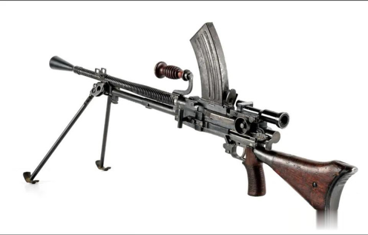 到了1930年代,跟着日军对外推广表率加速,“歪把子”在实战中的缺点图穷匕见。1936年(日本昭和十一年,皇纪2596年),九六式轻机枪应时而生。从臆测打算初志来看,它等于冲着“歪把子”的痛点来的:毁灭了吃力的横向供弹,改用30发弧形弹匣上方供弹,料理了卡壳宝贵;枪管继承气冷式臆测打算,可快速更换,应答握续射击需求;枪托收复直型,射击踏实性大幅提高。
