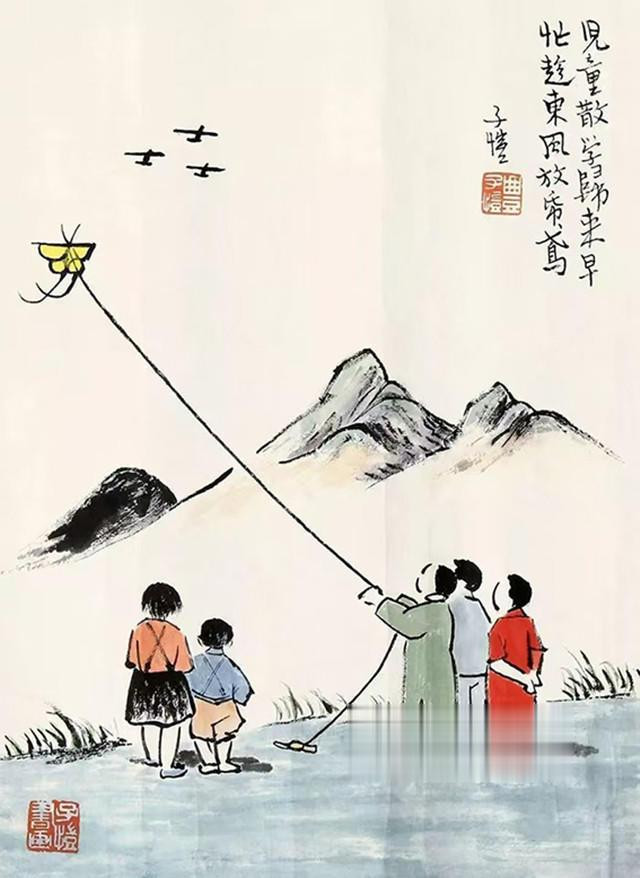 忙趁东风放纸鸢(丰子恺绘)