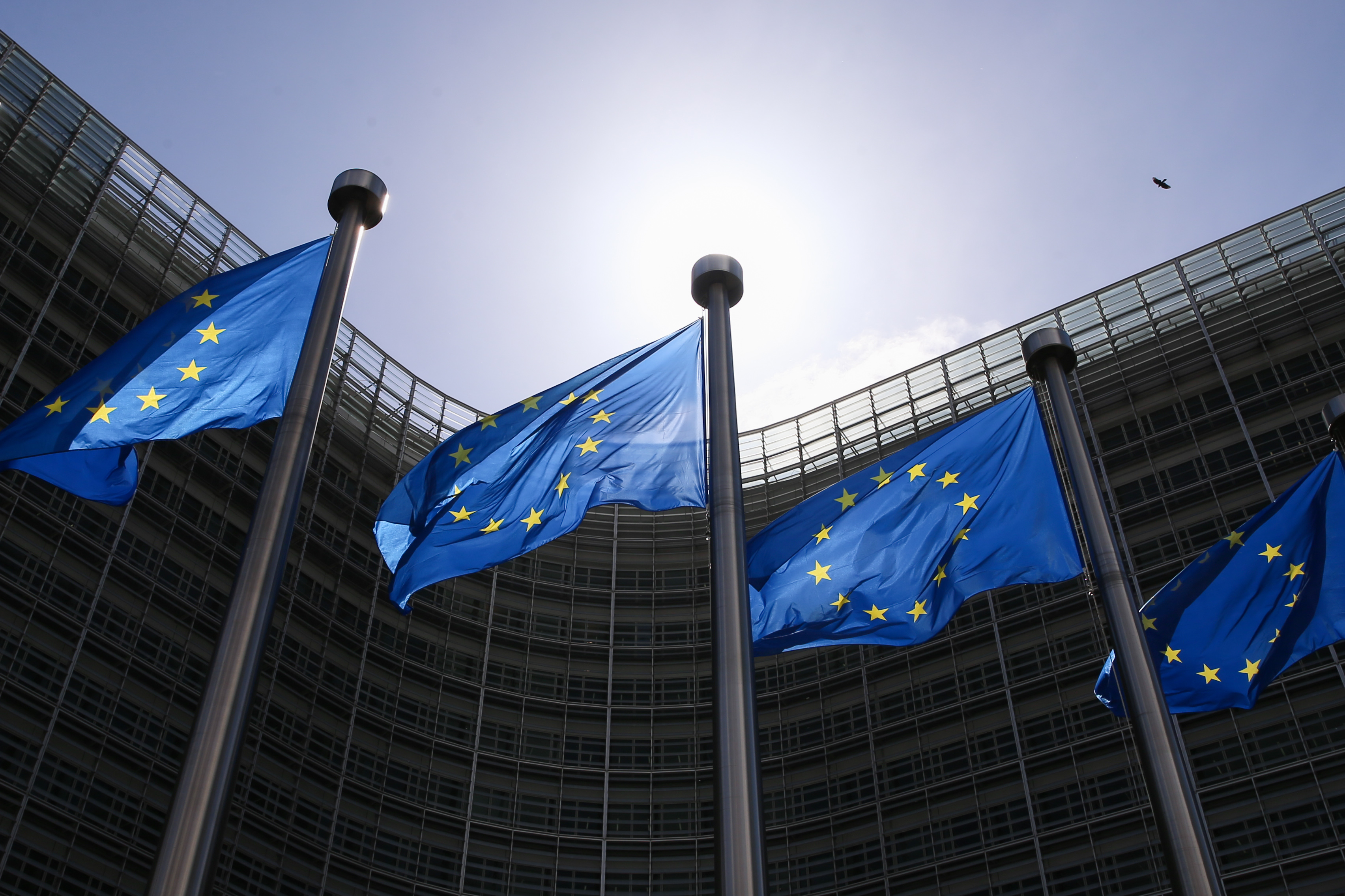 比利时布鲁塞尔的欧盟总部外飘扬着欧盟旗帜。新华社记者 郑焕松 摄