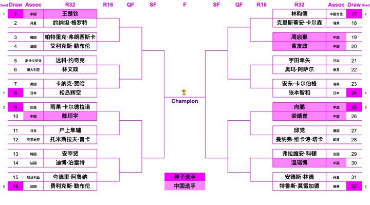 最初是周启豪与黄友政、梁靖崑与向鹏两对选手首轮奏凯对话,首日比赛就意味着参赛的七名选手,将有两东说念主被淘汰。而陈垣宇此次又要第一轮就要奏凯对战巴西名将雨果的强力挑战。王楚钦此次亦然将靠近外协会的各路名将。