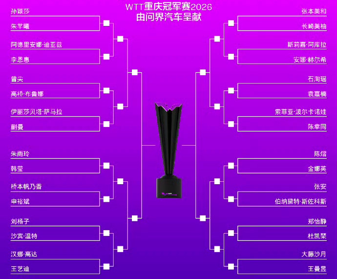 百家乐 WTT重庆冠军赛抽签出炉! 男队惨烈, 女队孙颖莎王曼昱各守半区