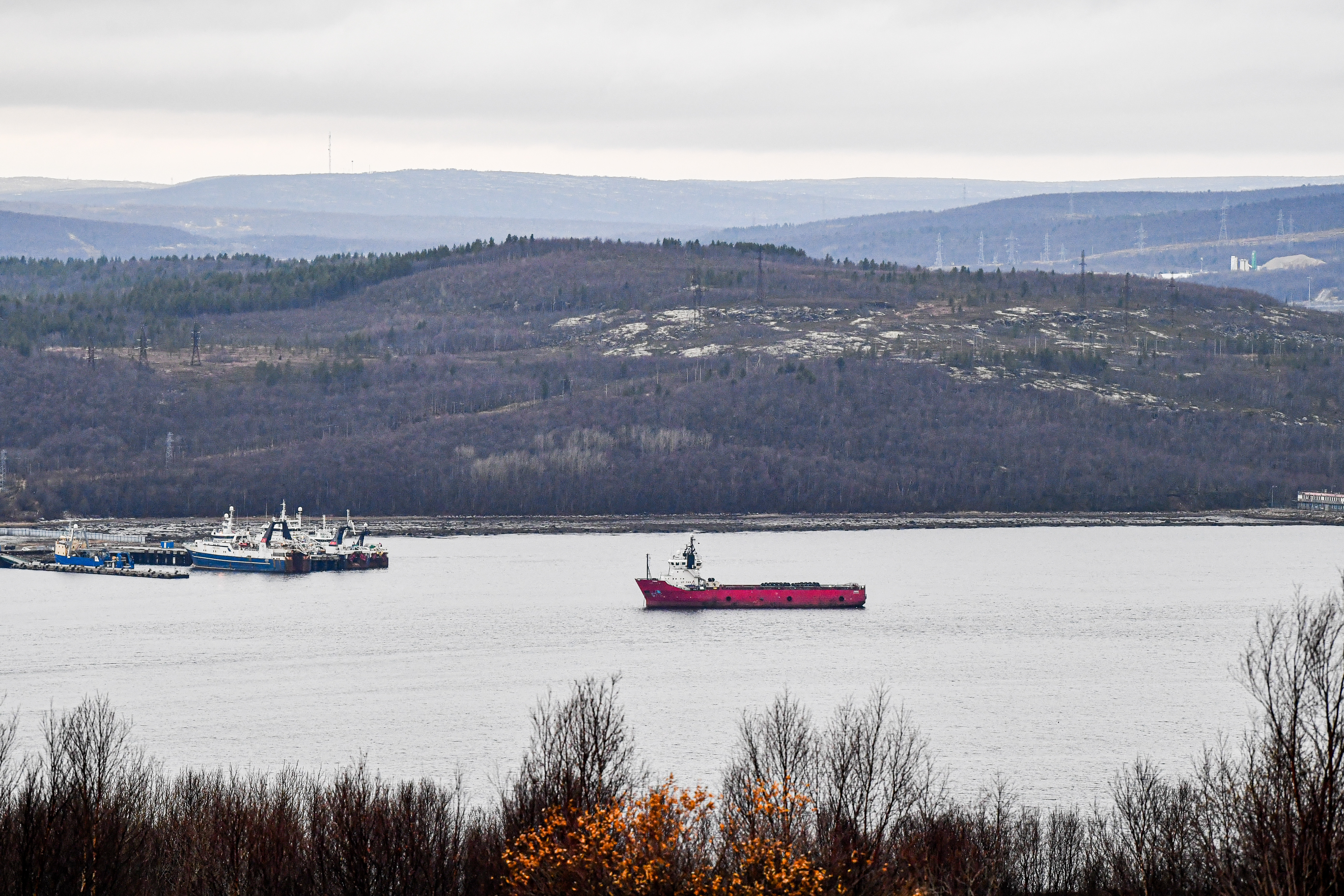 这是2025年10月23日在俄罗斯摩尔曼斯克市拍摄的港口风光。新华社记者张超群摄